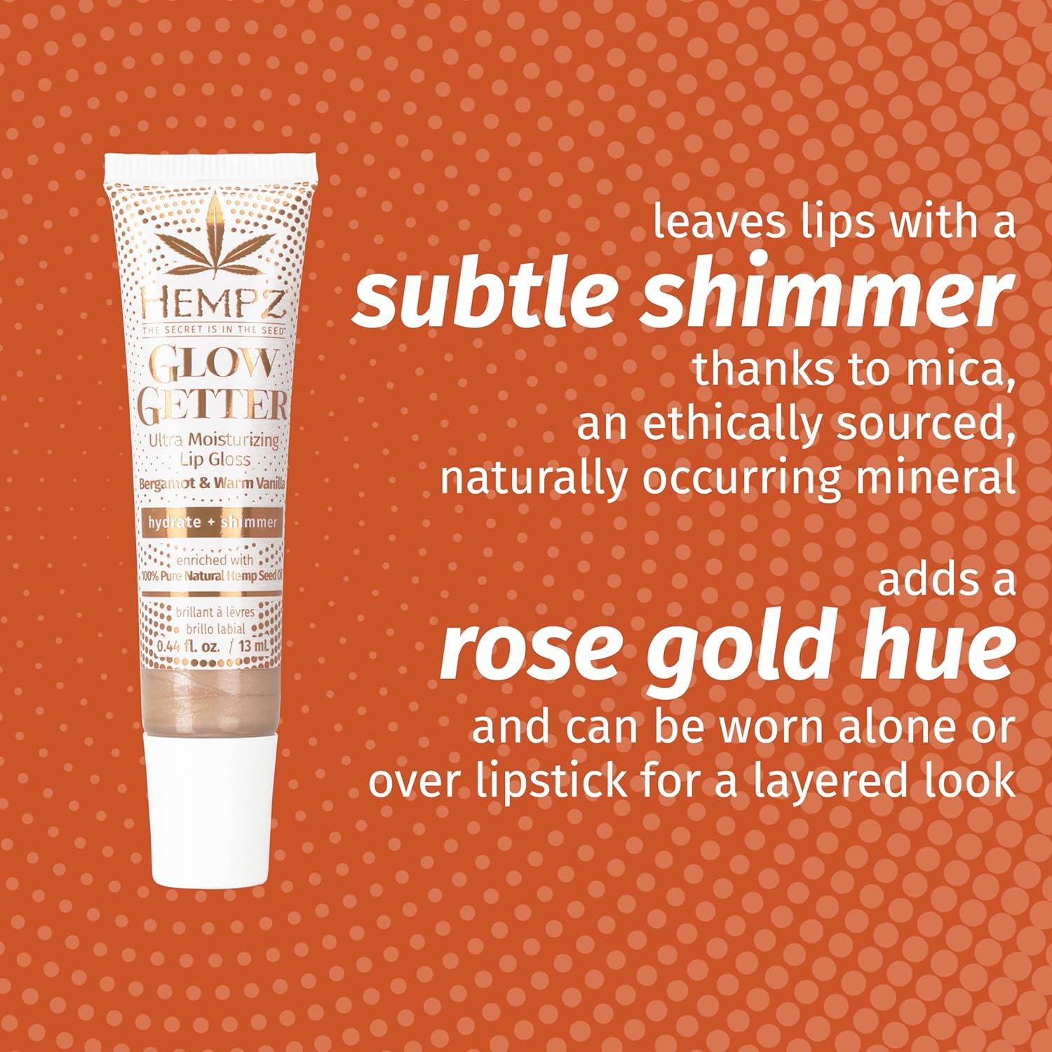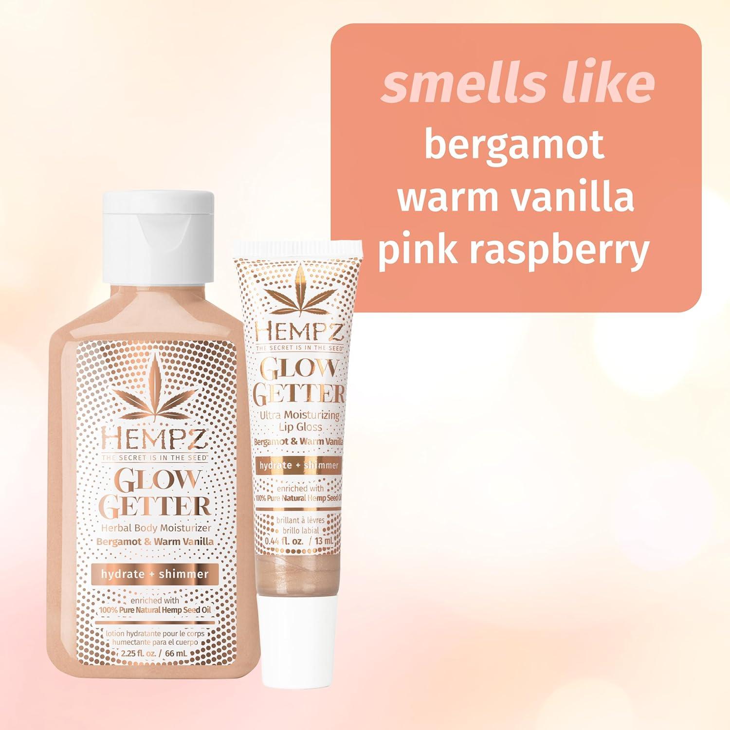 Offer Includes: – Mini Glow Getter Body Moisturizer 2.25 oz. – Glow Getter Lip Gloss .44 fl. oz.