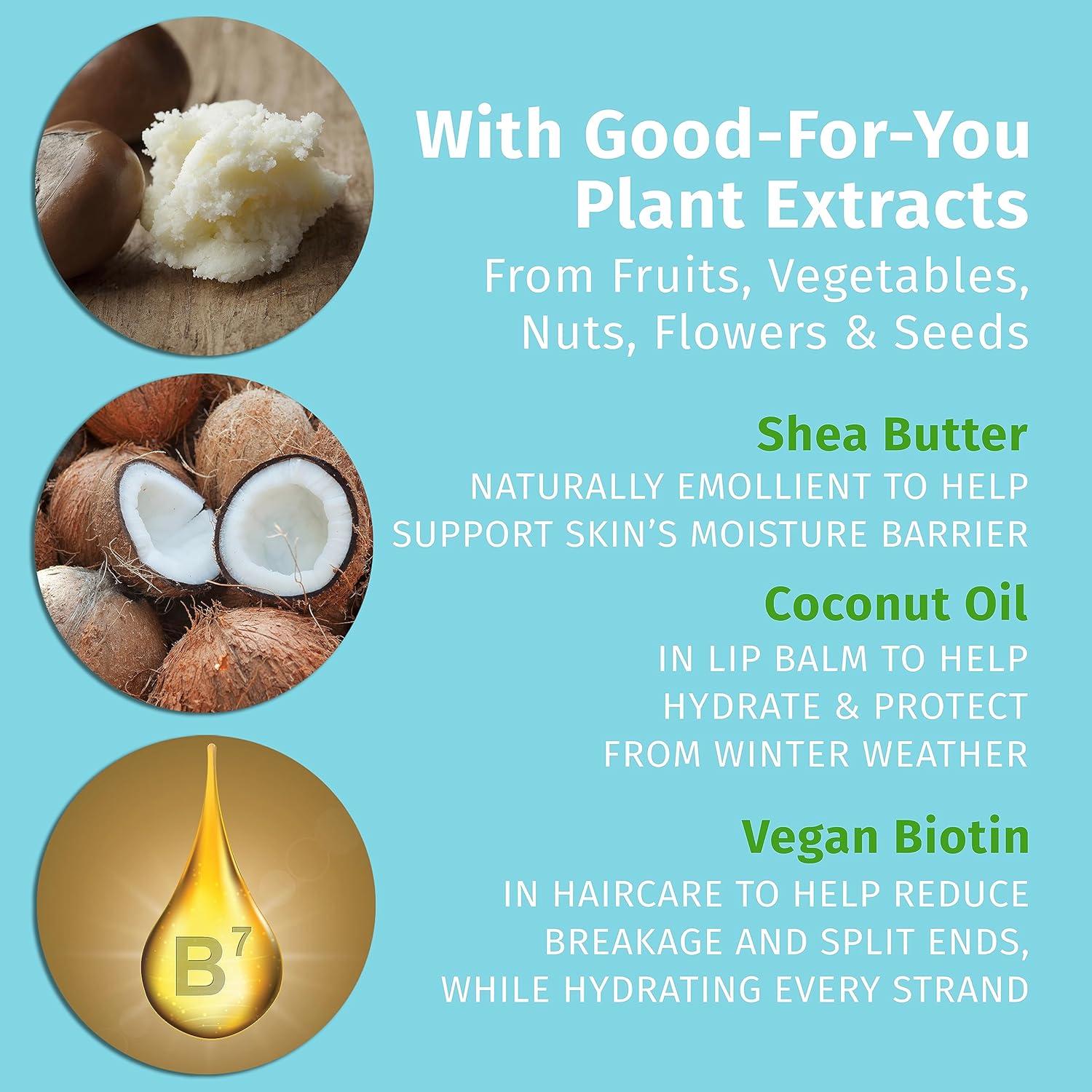 Festive holiday packaging – contains candy cane lane moisturizer (2.25 oz) & lip balm (.44 oz), vanilla mountain moisturizer (2.25 oz) & pineapple & melon, original, & triple moisture shampoo, conditioner & moisturizer (2.25 oz)